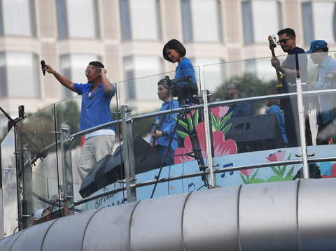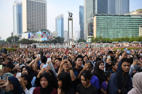Penampilan tersebut membuat ribuan orang berkumpul memenuhi kawasan Bundaran HI.