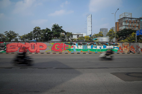Foto: Grafiti Raksasa Bertuliskan "Stop Genocide & All Eyes on Rafah" di Jakarta - my blog