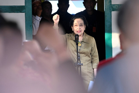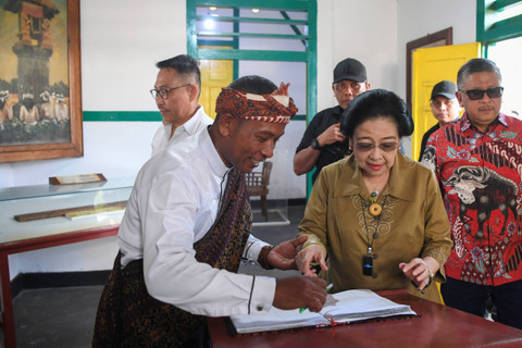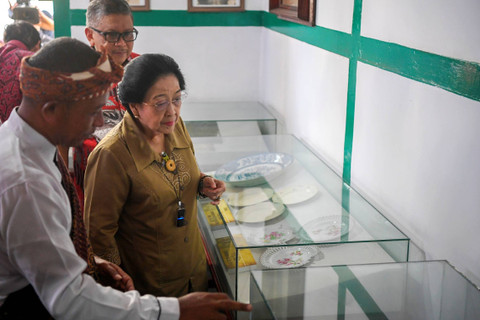 Presiden ke-5 RI sekaligus Ketua Dewan Pengarah Badan Pembinaan Ideologi Pancasila (BPIP) Megawati Soekarnoputri menyaksikan koleksi dari Situs Rumah Pengasingan Bung Karno di Ende, Nusa Tenggara Timur (NTT), Jumat (31/5). Foto: M Risyal Hidayat/ANTARA FOTODalam kunjungan yang merupakan rangkaian dari peringatan Hari Lahir Pancasila 2024, Megawati Soekarnoputri mengukuhkan pengurus Jaringan Kota-Kabupaten Tapal Sejarah Bung Karno (Jaket Bung Karno). Foto: M Risyal Hidayat/ANTARA FOTOPresiden ke-5 RI sekaligus Ketua Dewan Pengarah Badan Pembinaan Ideologi Pancasila (BPIP) Megawati Soekarnoputri menyaksikan koleksi dari Situs Rumah Pengasingan Bung Karno di Ende, Nusa Tenggara Timur (NTT), Jumat (31/5/2024). Foto: M Risyal Hidayat/ANTARA FOTOPresiden ke-5 RI sekaligus Ketua Dewan Pengarah Badan Pembinaan Ideologi Pancasila (BPIP) Megawati Soekarnoputri (depan) menyaksikan koleksi berupa ranjang dari Situs Rumah Pengasingan Bung Karno di Ende, Nusa Tenggara Timur (NTT), Jumat (31/5/2024). Foto: M Risyal Hidayat/ANTARA FOTOPresiden ke-5 RI sekaligus Ketua Dewan Pengarah Badan Pembinaan Ideologi Pancasila (BPIP) Megawati Soekarnoputri menyaksikan koleksi dari Situs Rumah Pengasingan Bung Karno di Ende, Nusa Tenggara Timur (NTT), Jumat (31/5/2024). Foto: M Risyal Hidayat/ANTARA FOTOPresiden ke-5 RI Megawati Soekarnoputri menandatangani berita acara pelantikan pengurus Jaringan Kota-Kabupaten Tapal Sejarah Bung Karno (Jaket Bung Karno) di Situs Rumah Pengasingan Bung Karno di Ende, Nusa Tenggara Timur (NTT), Jumat (31/5/2024). Foto: M Risyal Hidayat/ANTARA FOTOPresiden ke-5 RI sekaligus Ketua Dewan Pengarah Badan Pembinaan Ideologi Pancasila (BPIP) Megawati Soekarnoputri memberikan salam saat berkunjung di Situs Rumah Pengasingan Bung Karno di Ende, Nusa Tenggara Timur (NTT), Jumat (31/5/2024). Foto: M Risyal Hidayat/ANTARA FOTOPresiden ke-5 RI sekaligus Ketua Dewan Pengarah Badan Pembinaan Ideologi Pancasila (BPIP) Megawati Soekarnoputri (tengah) berfoto bersama warga sekitar dari Situs Rumah Pengasingan Bung Karno di Ende, Nusa Tenggara Timur (NTT), Jumat (31/5/2024). Foto: M Risyal Hidayat/ANTARA FOTOPresiden ke-5 RI sekaligus Ketua Dewan Pengarah BPIP Megawati Soekarnoputri didampingi Menteri PPPA I Gusti Ayu Bintang Darmawati (kiri) usai berkunjung di Situs Rumah Pengasingan Bung Karno di Ende, Nusa Tenggara Timur (NTT), Jumat (31/5/2024). Foto: M Risyal Hidayat/ANTARA FOTO