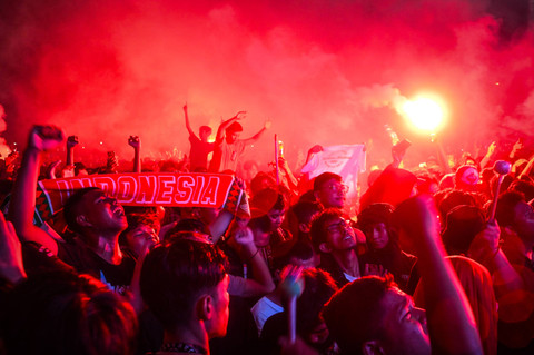 Foto: Wajah Kekecewaan Suporter saat Nobar Timnas Indonesia di Jakarta - my blog
