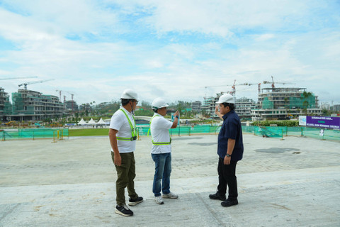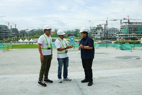 Menteri BUMN Erick Thohir mengecek progres pembangunan Lapangan Upacara dan Istana Negara di IKN, Sabtu (29/6/2024). Foto: Kementerian BUMN