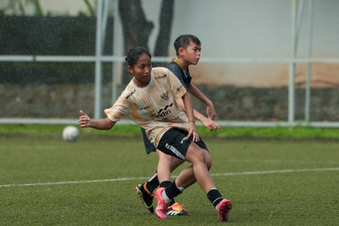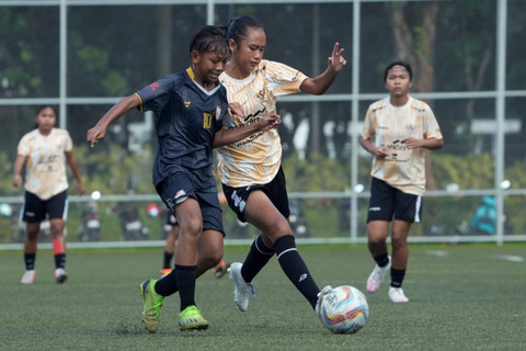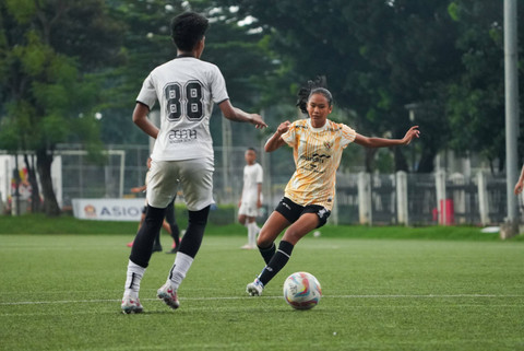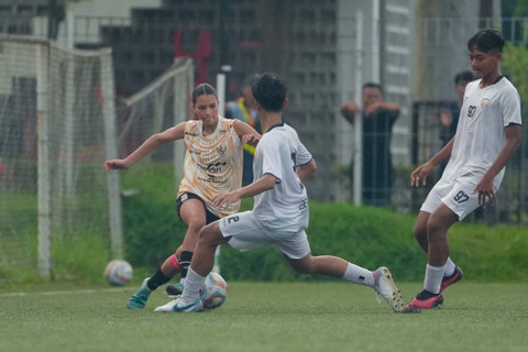Timnas Wanita Indonesia latih tanding dengan Asiana U-14 di Lapangan Rugby, Kompleks SUBK, Senayan, Jakarta Pusat, pada Kamis (27/6/2024). Foto: Timnas Wanita Indonesia