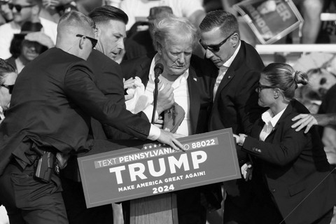 Kandidat Presiden dari partai Republik Donald Trump dievakuasi petugas keamanan usai diduga ditembak saat sedang berkampanye di Pennsylvania, Amerika Serikat, Sabtu (13/7) waktu setempat.