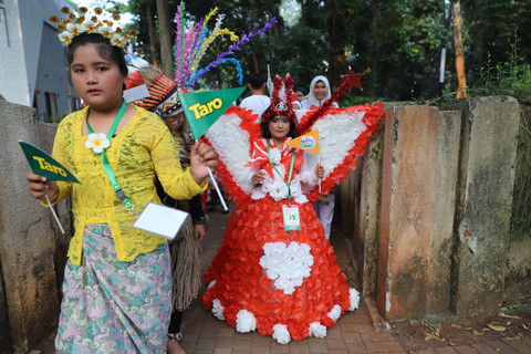 Ada yang mengenakan baju adat dari Kalimantan, Sumatera Barat, Sumatera Utara, Jawa Barat, Jawa Tengah, Madura, Bali, Sulawesi, dan masih banyak lagi. Ada juga yang mengenakan kostum daur ulang dengan beragam kreasi.