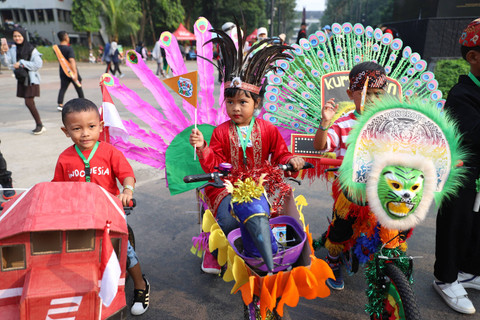 Hari kedua kumparanMOM Festival Hari Anak 2024, Minggu (28/7), dimulai dengan Pawai Kostum Nusantara dan sepeda hias. Seluruh peserta tampil menawan dengan kostum Nusantara pilihan masing-masing.