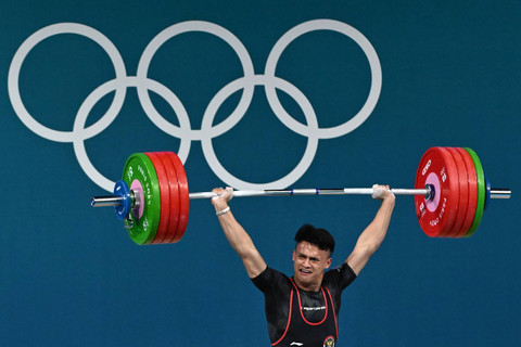 Rizki Juniansyah bertanding di nomor 73 kg putra cabang olahraga (cabor) angkat besi Olimpiade Paris 2024 di Paris Expo Porte de Versailles, Prancis, Junat (9/8) dini hari. Rizki berhasil meraih emas pada debutnya di Olimpiade dengan total angkatan adalah 354 kg. Foto: Wahyu Putro A/ANTARA FOTOPada Snatch Rizki baru berhasil mengangkat beban 155 kg pada percobaan kedua, lalu pada percobaan ketiga ia gagal mengangkat beban 162 kg. Angkatan terbaik Rizki pada Snatch sama seperti Luis Mosquera asal Kolombia, yakni 155 kg. Mereka hanya kalah dari atlet China, Shi Ziyong, yang memiliki angkatan terbaik 165 kg. Foto: Wahyu Putro A/ANTARA FOTOLalu dalam kesempatan Clean & Jerk, Pria kelahiran 21 tahun itu berhasil mengangkat beban 191 kg di kesempatan pertama dan mengangkat 199 pada kesempatan kedua. Dengan keberhasilan tersebut pria kelahiran Banten itu berhasil meraih emas setelah atlet asal China Ziyong gagal tiga kali dalam angakatan Clear & Jerk. Foto: Wahyu Putro A/ANTARA FOTORizki adalah peraih medali ketiga bagi Indonesia dalam Olimpiade Paris 2024 setelah pebulu tangkis putri Gregoria Mariska Tunjung dan peraih emas pertama yakni atlet panjat tebing Veddriq Leonardo. Foto: Wahyu Putro A/ANTARA FOTOFoto: Wahyu Putro A/ANTARA FOTOFoto: Wahyu Putro A/ANTARA FOTOFoto: Wahyu Putro A/ANTARA FOTO