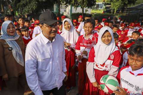 Selain penyerahan bantuan secara simbolis, Gus Ipul juga menunjau kegiatan pemeriksaan kesehatan, dialog bersama para penerima bantuan, peninjauan kampanye sosial pencegahan bullying dan kekerasan serta penyerahan bantuan peralatan olahraga dan edukasi di SDN Sumur Batu II.