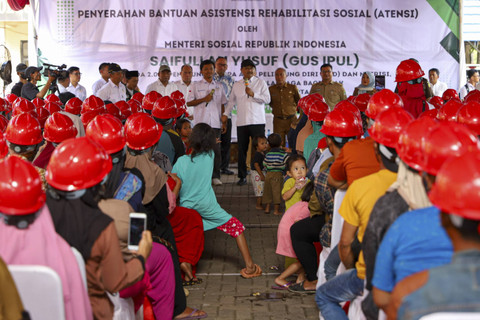 Bantuan tersebut terdiri dari 2.055 paket bantuan Asistensi Rehabilitasi Sosial (ATENSI) alat pelindung diri (APD) seperti helm, sepatu boat dan senter kepala serta nutrisi bagi pemulung, 389 paket ATENSI pemenuhan kebutuhan dasar berupa sembako dan nutrisi.