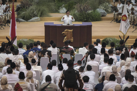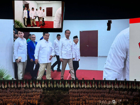 Rpimnas tersebut dihadiri oleh Presiden Joko Widodo, Wakil Presiden Ma'ruf Amin, Gibran Rakabuming Raka serta sejumlah ketua umum partai Koalisi Indonesia Maju.