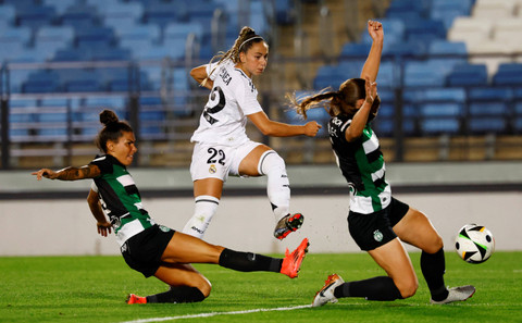 Real Madrid wanita kalahkan Sporting CP wanita pada Leg kedua ronde kedua Liga Champions Wanita di Estadio Alfredo Di Stefano, Madrid, Spanyol, Kamis (26/9) waktu setempat.
