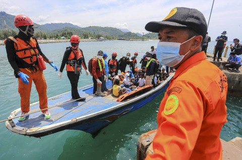 Setelah terombang-ambing selama beberapa hari di perairan laut akhirnya para imigran tersebut berhasil dievakuasi.