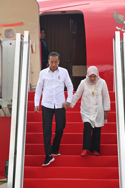 Pesawat Kepresidenan Indonesia-1 jenis Boeing 737-800 yang membawa Presiden Joko Widodo dan Ibu Negara Iriana mendarat di Bandara Nusantara, Ibu Kota Nusantara, Kalimantan Timur, Jumat (11/10). Foto: Sigid Kurniawan/ANTARA FOTO Untuk pertama kalinya Presiden Jokowi bersama sang istri, Iriana Jokowi dengan pesawat Kepresidenan Indonesia-1 jenis Boeing 737-800 mendarat di Bandara Nusantara, IKN. Foto: Sigid Kurniawan/ANTARA FOTO Foto: Sigid Kurniawan/ANTARA FOTO Foto: Sigid Kurniawan/ANTARA FOTO