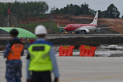 Ini untuk pertama kalinya pesawat Kepresidenan Indonesia-1 dengan jenis Boeing 737-800 mendarat di Bandara Nusantara, IKN.