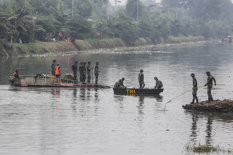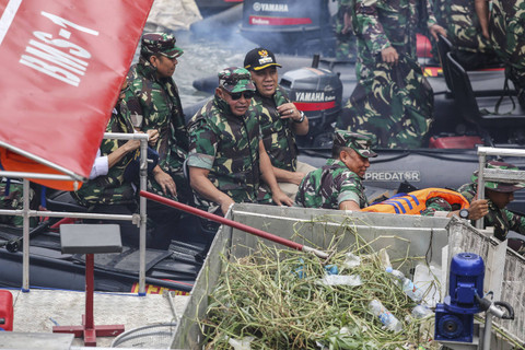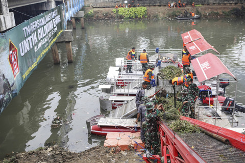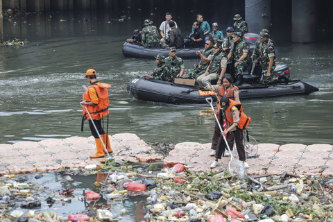 Sejumlah prajurit TNI AD membersihkan sampah saat giat Ciliwung Bening di Sungai Ciliwung, Tambora, Jakarta Barat, Minggu (13/10/2024). Foto: Asprilla Dwi Adha/ANTARA FOTODalam rangka memperingati HUT Ke-79 TNI, TNI Angkatan Darat berkolaborasi dengan Unit Penanganan Sampah Badan Air dan Sudin SDA menggelar giat bersih-bersih Sungai Ciliwung yang bertujuan untuk meningkatkan kualitas lingkungan agar indah dipandang. Foto: Asprilla Dwi Adha/ANTARA FOTOKegiatan tersebut juga di ditinjau secara langsung oleh Ksad Jenderal TNI Maruli Simanjuntak dengan menggunakan perahu karet. Foto: Asprilla Dwi Adha/ANTARA FOTOFoto: Asprilla Dwi Adha/ANTARA FOTO