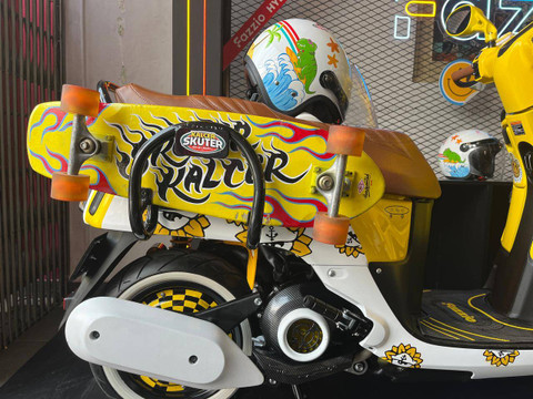 Vijie juga menambahkan beberapa aksesoris untuk menunjang aktivitasnya. Ia menambahkan rak untuk membawa papan skateboard yang bisa diletakkan di bagian samping tanpa harus repot saat di perjalanan.