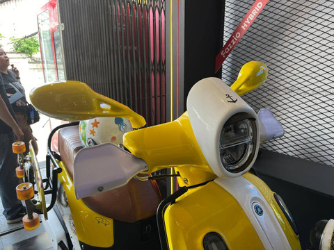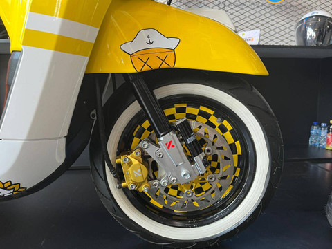 Pada dasarnya, Yamaha Fazzio dari pabrikan sudah tampil seperti motor classic. Foto: Fitra Andrianto/kumparanNamun tak sedikit pemiliknya yang ingin tampil beda. Foto: Fitra Andrianto/kumparanSalah satunya adalah Atlet Skateboard Satria Vijie yang memodifikasi Yamaha Fazzio Hybrid Neo lansiran 2024 sesuai gaya dan keinginannya. Foto: Fitra Andrianto/kumparanMotor yang aslinya berwarna kuning, di-repaint lagi dengan warna kuning yang berbeda dari pabrikan dengan tambahan warna putih. Foto: Fitra Andrianto/kumparanPerpaduan warnanya bikin motor miliknya jadi kalcer. Foto: Fitra Andrianto/kumparanDi bagian body ada juga desain logo bunga matahari dengan topi pelaut yang khas seperti gaya Vijie. Foto: Fitra Andrianto/kumparanVijie juga menambahkan beberapa aksesoris untuk menunjang aktivitasnya. Foto: Fitra Andrianto/kumparanIa menambahkan rak untuk membawa papan skateboard yang bisa diletakkan di bagian samping tanpa harus repot saat di perjalanan. Foto: Fitra Andrianto/kumparanMotor yang diberi nama mentari ini juga pakai aksesoris tambahan seperti penggunaan spion Kymco yang di-repaint kuning. Foto: Fitra Andrianto/kumparanBagian depan juga ada tambahan bracket lampu. Foto: Fitra Andrianto/kumparanVijie juga melapis beberapa bagian motornya dengan karbon kevlar seperti di bagian CVT hingga bagian cover filter. Foto: Fitra Andrianto/kumparanBagian velgnya dibikin leblih kalcer dengan penambahan wheeldop di bagian depan dan belakang. Foto: Fitra Andrianto/kumparanSelain itu, Vijie juga sudah mengganti beberapa bagian motornya dengan produk after market. Foto: Fitra Andrianto/kumparan
