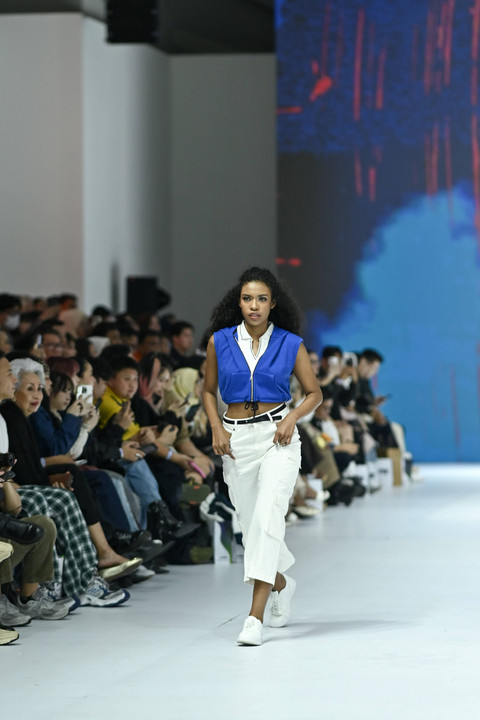 Fashion show koleksi brand ZES kolaborasi APR x Matahari x DuniaTex di Jakarta Fashion Week 2025, PIM 3, Jakarta, Kamis (24/10/2024). Foto: Jakarta Fashion Week/Getty Images