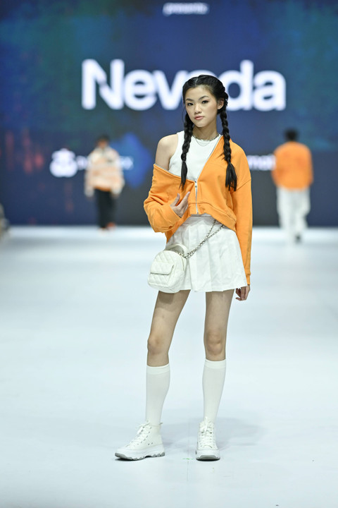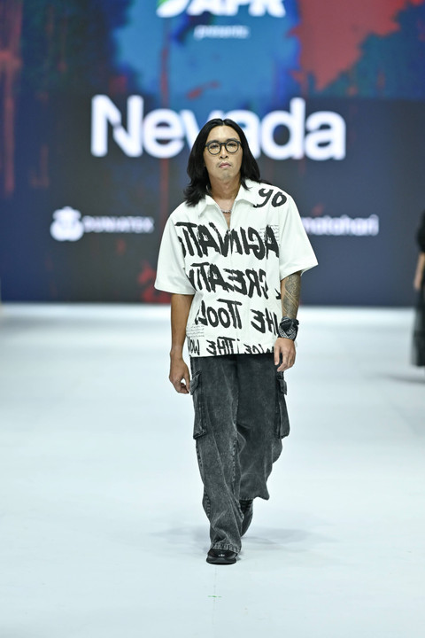 Fashion show koleksi brand Nevada kolaborasi APR x Matahari x DuniaTex di Jakarta Fashion Week 2025, PIM 3, Jakarta, Kamis (24/10/2024). Foto: Jakarta Fashion Week/Getty Images