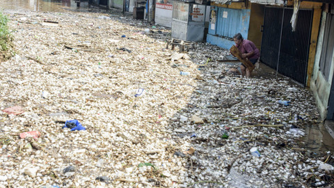 Warga menggunakan perahu untuk melintasi banjir di Dayeuhkolot, Kabupaten Bandung, Jawa Barat, Jumat (22/11/2024). Foto: ANTARA FOTO/Novrian ArbiBPBD Kabupaten Bandung mencatat sebanyak dua kecamatan di Kabupaten Bandung terdampak banjir setinggi 30cm hingga 110cm akibat meluapnya Sungai Citarum. Foto: ANTARA FOTO/Novrian ArbiWarga menggendong pasanganya berjalan melintasi banjir di Dayeuhkolot, Kabupaten Bandung, Jawa Barat, Jumat (22/11/2024). Foto: ANTARA FOTO/Novrian ArbiTumpukan sampah sepanjang 15 meter lebih tersebut terjadi akibat terbawa arus banjir luapan Sungai Citarum. Foto: ANTARA FOTO/Novrian Arbi