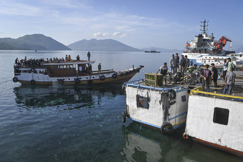 Warga bersiap memasuki kapal motor di Pelabuhan Larantuka, Kabupaten Flores Timur, NTT, Minggu (17/11). Foto: Aditya Pradana Putra/ANTARA FOTOKapal motor laut kayu tersebut bertarif Rp10 ribu-Rp50 ribu per orang dan sepeda motor dikenakan tarif sebesar Rp25 ribu-Rp50 ribu per unit. Foto: Aditya Pradana Putra/ANTARA FOTOTransportasi laut ini menjadi tumpuan bagi masyarakat setempat sebagai transportasi orang maupun logistik kebutuhan sehari-hari antarpulau di Flores Timur maupun kabupaten lain di sekitarnya. Foto: Aditya Pradana Putra/ANTARA FOTOFoto: Aditya Pradana Putra/ANTARA FOTOFoto: Aditya Pradana Putra/ANTARA FOTO
