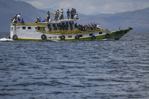Sejumlah warga menumpang kapal motor saat melintas di Selat Gonzalu, Larantuka, Kabupaten Flores Timur, NTT, Minggu (17/11/2024). Foto: Aditya Pradana Putra/ANTARA FOTO
