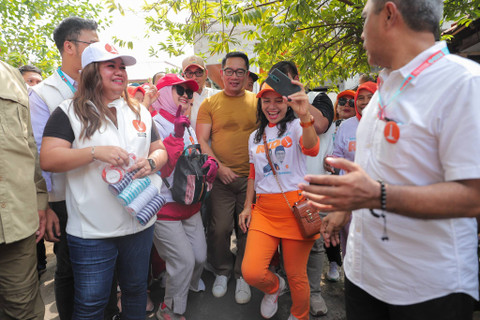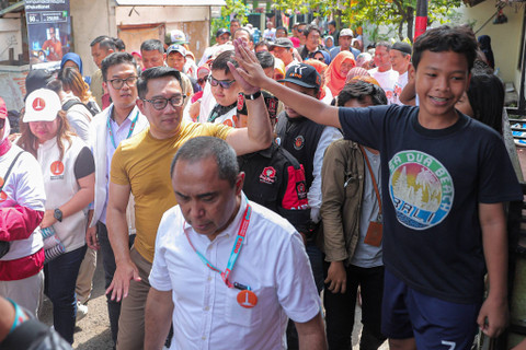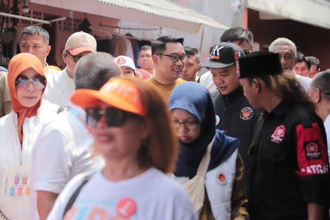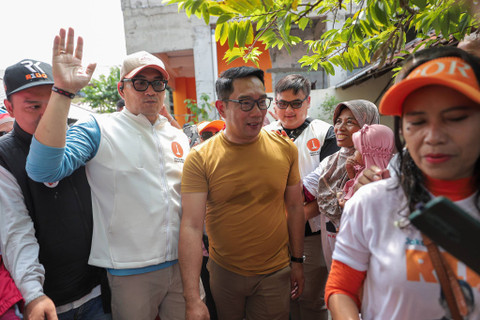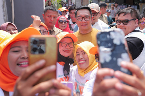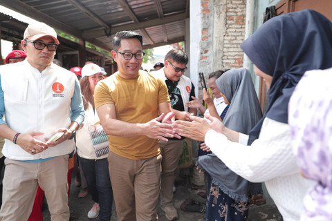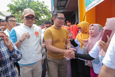 Ridwan Kamil datang dengan mengenakan kaus berwarna mustard. Kedatangan RK disambut hangat oleh para warga. Warga saling berebut bersalaman hingga meminta berswafoto bersama eks Gubernur Jawa Barat tersebut.