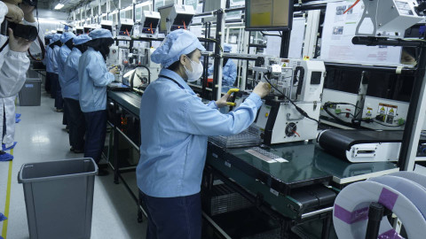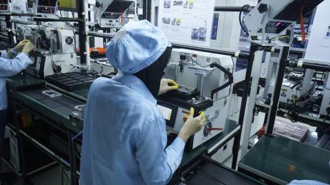 Karyawan melakukan perakitan Oppo Find X8 Series di pabrik Oppo Manufacturing Indonesia. Foto: Muhammad Fikrie/kumparan