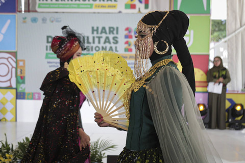 Para penyandang disabilitas intelektual berjalan di panggung mengenakan Batik Ciprat saat gelaran acara Hari Disabilitas Internasional 2024 di Taman Ismail Marzuki, Jakarta, Minggu (1/12/2024). Foto: Iqbal Firdaus/kumparanTidak hanya itu, anak-anak disabilitas juga membawakan Tari Kicir-kicir di acara tersebut. Foto: Iqbal Firdaus/kumparanHari Disabilitas Internasional 2024 menjadi momentum penting untuk merayakan keberagaman, memperkuat solidaritas, dan membuka peluang setara bagi semua untuk bersama-sama berkarya dan berkontribusi bagi bangsa. Foto: Iqbal Firdaus/kumparanFoto: Iqbal Firdaus/kumparanFoto: Iqbal Firdaus/kumparanFoto: Iqbal Firdaus/kumparan