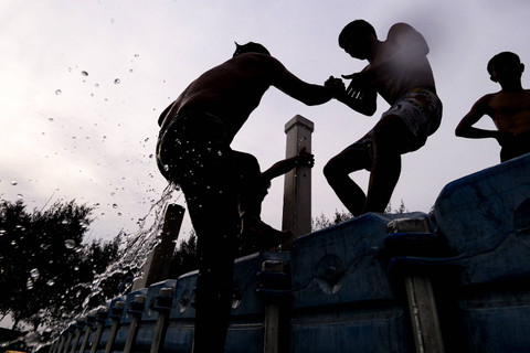 Peserta melakukan Cardiopulmonary resuscitation (CPR) saat ujian terakhir hasil latihan penjaga pantai (lifeguard) di Pulau Tidung, Jakarta. Foto: Muhammad Adimaja/Antara Foto