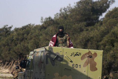 Pasukan bentukan pemerintah baru Suriah melakukan patroli usai 14 polisi tewas dalam penyergapan di Homas, Suriah, Kamis (26/12/2024). Foto: Khalil Ashawi/Reuters