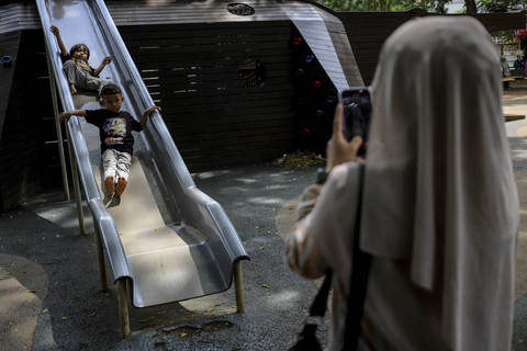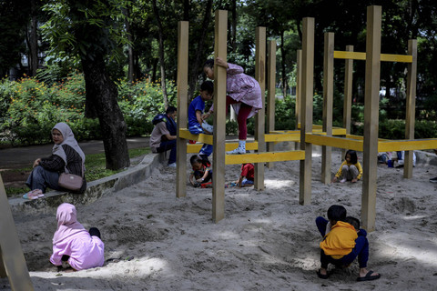 Sejumlah anak terlihat bermain di Tebet Eco Park, Jakarta, Jumat (27/12). Kawasan hijau ini menjadi favorit warga, terutama keluarga, untuk menikmati waktu luang di tengah kota.