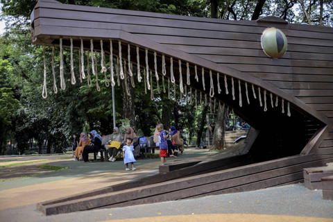 Sejumlah anak terlihat bermain di Tebet Eco Park, Jakarta, Jumat (27/12). Foto: Jamal Ramadhan/kumparanKawasan hijau ini menjadi favorit warga, terutama keluarga, untuk menikmati waktu luang di tengah kota. Selain bermain, warga juga memanfaatkan fasilitas di taman ini untuk berolahraga dan bersantai. Foto: Jamal Ramadhan/kumparanSebagai salah satu alternatif wisata gratis, Tebet Eco Park menarik banyak pengunjung, terutama di tengah kondisi ekonomi yang tidak menentu. Dengan suasana yang asri dan fasilitas lengkap, taman ini menjadi pilihan ideal bagi masyarakat untuk menghabiskan waktu tanpa harus mengeluarkan biaya besar. Foto: Jamal Ramadhan/kumparanFoto: Jamal Ramadhan/kumparanFoto: Jamal Ramadhan/kumparanFoto: Jamal Ramadhan/kumparanFoto: Jamal Ramadhan/kumparan