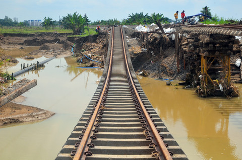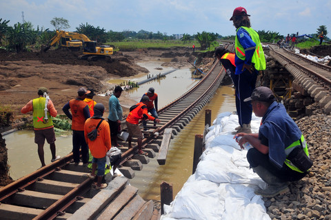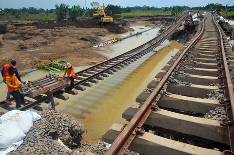 Sebelumnya satu jalur kereta yang terdampak banjir berhasil diperbaiki. Sehingga kereta yang melintas masih terbatas dengan kecepatan yang ditentukan.