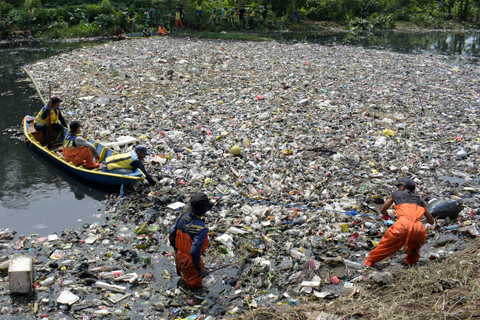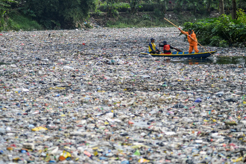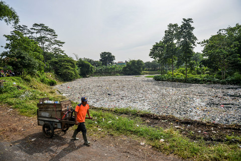 Foto: Sampah Sepanjang 800 Meter Menumpuk di Sungai Citarum Lama, Bandung - my blog