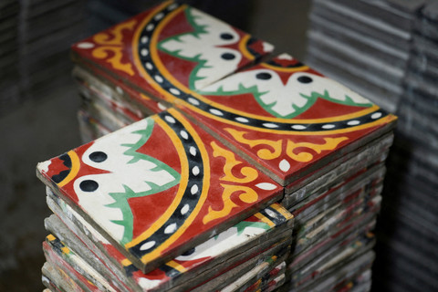 Ubin Andalusia terlihat di bengkel pembuatan ubin Andalusia milik arsitek Tunisia Samir Daghfous di Nabeul, Tunisia. Foto: Jihed Abidellaoui/REUTERS