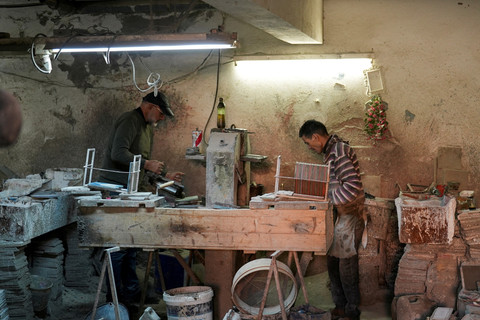 Dalam produksinya, Daghfous menggunakan metode tradisional dan mesin pengepres kuno untuk memproduksi ubin Andalusia, yang terkenal dengan pola geometris yang rumit dan warna-warna yang cerah.