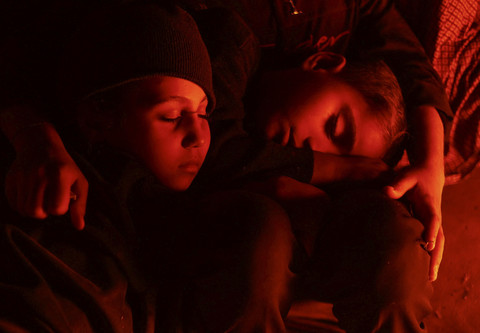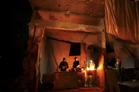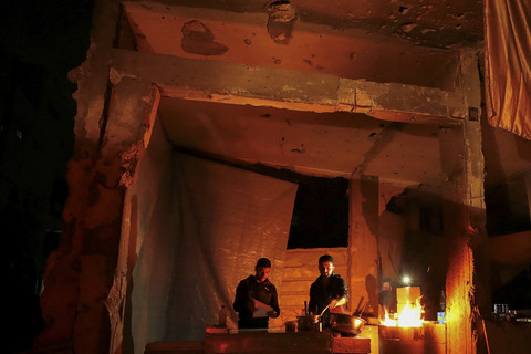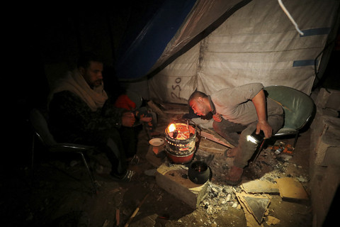 Warga Palestina berlindung saat pemadaman listrik di tengah gencatan senjata antara Israel dan Hamas, di Kota Gaza, Senin (3/2).