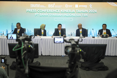Direktur Utama PT Bank Syariah Indonesia Tbk (BSI) Herry Gunardi didampingi Direktur Kepatuhan dan SDM BSI Tribuana Tunggadewi, dan Direktur Keuangan dan Strategi BSI Ade Cahyo Nugroho saat menghadiri Konferensi Pers Kinerja Kuartal IV Tahun 2024, Kamis (6/2/2025). Foto: Iqbal Firdaus/kumparanBSI mencatatkan laba bersih sebesar Rp 7,01 triliun pada tahun 2024. Nilai tersebut tumbuh 22,83 persen secara tahunan atau year on year (yoy). Foto: Iqbal Firdaus/kumparanDirektur Utama BSI Hery Gunardi mengatakan, BSI menyalurkan pembiayaan sebesar Rp 277,86 triliun, tumbuh 15,92 persen yoy. Foto: Iqbal Firdaus/kumparan"Laba bersih BSI sebesar Rp 7,01 triliun pada tahun 2024," kata Hery dalam paparan kinerja tahun 2024 secara virtual, Kamis (6/2). Foto: Iqbal Firdaus/kumparanFoto: Iqbal Firdaus/kumparanFoto: Iqbal Firdaus/kumparan