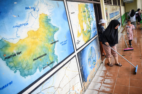 Foto: Guru di Samarinda Gotong Royong Bersihkan Sekolah Usai Banjir - my blog