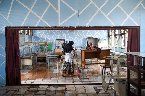 Sejumlah guru membersihkan lumpur di ruang kelas yang usai banjir menggenangi SDN 024 Samarinda Utara, Samarinda, Kalimantan Timur, Minggu (2/2). Foto: M Risyal Hidayat/ANTARA FOTOMereka gotong royong membersihkan satu persatu bagian luar dan dalam ruangan kelas. Foto: M Risyal Hidayat/ANTARA FOTOMenurut Badan Penanggulangan Bencana Daerah (BPBD) Kaltim, banjir di kawasan perumahan Bengkuring yang disebabkan intensitas hujan tinggi hingga luapan air dari Bendungan Benanga di Lempake hampir 90 persen sudah surut. Foto: M Risyal Hidayat/ANTARA FOTOFoto: M Risyal Hidayat/ANTARA FOTO