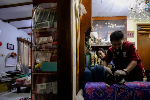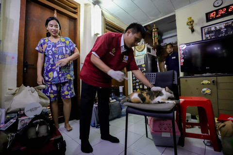 Petugas dari Suku Dinas Ketahanan Pangan, Kelautan, dan Pertanian (Sudin KPKP) Jakarta Pusat memberikan layanan keliling atau door to door vaksinasi rabies bagi hewan peliharaan di kawasan Kebon Kacang, Jakarta, Rabu (5/2). Foto: Jamal Ramadhan/kumparanDalam sehari, petugas menyiapkan 100 dosis vaksin rabies. Foto: Jamal Ramadhan/kumparanRata-rata sekitar 30 hingga 50 hewan peliharaan di Kelurahan Kebon Kacang diberikan vaksin rabies. Foto: Jamal Ramadhan/kumparanProgram ini bertujuan untuk mencegah penyebaran rabies di lingkungan permukiman serta meningkatkan kesadaran warga dalam menjaga kesehatan hewan peliharaan mereka. Foto: Jamal Ramadhan/kumparanFoto: Jamal Ramadhan/kumparan