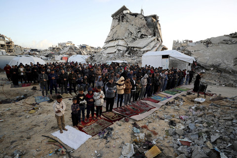 Foto: Haru Warga Gaza Salat Idul Fitri di Tengah Reruntuhan - my blog