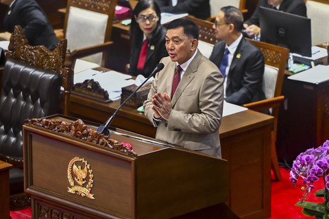 DPR RI menyetujui Revisi Undang-Undang Nomor 34 Tahun 2024 tentang TNI pada Rapat Paripurna ke-15 Masa Persidangan II 2024-2025, Kamis (20/3). Foto: Rivan Awal Lingga/ANTARA FOTODalam rapat ini, seluruh pimpinan DPR hadir. Sementara anggota yang hadir berjumlah 304 orang dan dihadiri seluruh fraksi. Menhan Sjafrie Sjamsoeddin, Mensesneg Prasetyo Hadi, hingga Panglima TNI Jenderal Agus Subiyanto turut menghadiri sidang ini. Foto: Rivan Awal Lingga/ANTARA FOTOPimpinan rapat paripurna DPR RI yakni Ketua DPR Puan Maharani pun menerima usulan perubahan yang disampaikan Utut terkait Revisi UU TNI itu. Lalu mengembalikannya kepada forum. Foto: Rivan Awal Lingga/ANTARA FOTOSetelah itu, Puan kembali bertanya kepada seluruh fraksi yang hadir apakah sepakat untuk menjadikan RUU TNI ini menjadi Undang-Undang. Foto: Rivan Awal Lingga/ANTARA FOTOFoto: Rivan Awal Lingga/ANTARA FOTOFoto: Rivan Awal Lingga/ANTARA FOTO