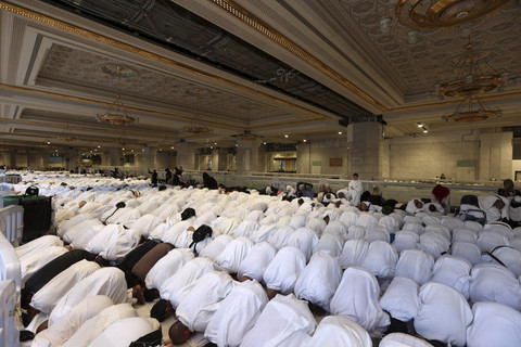 Umat Muslim melaksanakan salat subuh di Masjidil Haram di kota suci Makkah, Arab Saudi, pada awal Idul Fitri, yang menandai berakhirnya bulan puasa Ramadan, Minggu (30/3/2025). Foto: Abdel Ghani Bashir/AFPTampak jutaan umat muslim berkumpul dan melaksanakan ibadah pada hari kemenangan Idul Fitri 1446 Hijriah atau Lebaran 2025. Foto: Abdel Ghani Bashir/AFPDalam pelaksanaan salat Idul Fitri tersebut dipimpin oleh Imam dan Khotib Masjidil Haram yakni Syekh Abdulrahman bin Abdulaziz Al-Sudais. Foto: Abdel Ghani Bashir/AFPDalam khotbahnya Ia menyampaikan agar umat muslim agar tidak mengurangi ketaatan setelah Ramadan usai. Foto: Abdel Ghani Bashir/AFPFoto: Abdel Ghani Bashir/AFPFoto: Abdel Ghani Bashir/AFPFoto: Abdel Ghani Bashir/AFP