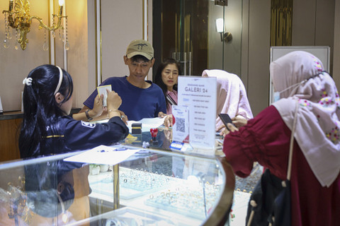 Warga mengantre untuk melakukan aktivitas jual beli Emas di Galeri 24, Jakarta, Kamis (17/4/2025). Foto: Iqbal Firdaus/kumparanTren pembelian logam mulai Emas akhir-akhir ini mengalami peningkatan. Salah satunya terjadi di gerai penjualan Emas, Galeri 24 dipadati calon pembeli. Foto: Iqbal Firdaus/kumparanHarga emas PT Aneka Tambang Tbk (ANTM) atau Antam melesat Rp 32.000 per gram pada Kamis (17/4). Foto: Iqbal Firdaus/kumparanBerdasarkan situs Logam Mulia, harga emas Antam hari ini berada di harga Rp 1.975.000 per gram. Foto: Iqbal Firdaus/kumparanNamun pada tabel harga yang tertera, harga emas Antam hari ini di Galeri 24 berada di harga Rp 2.037.000 per gramnya. Foto: Iqbal Firdaus/kumparanFoto: Iqbal Firdaus/kumparanFoto: Iqbal Firdaus/kumparanFoto: Iqbal Firdaus/kumparan