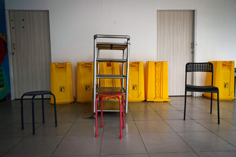 Pekerja merapikan barang di mitra dapur makan bergizi gratis (MBG) di kawasan Kalibata, Jakarta, Rabu (16/4/2025). Foto: Iqbal Firdaus/kumparan