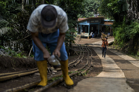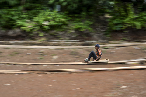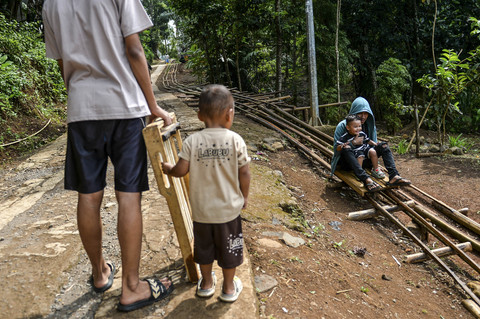 Warga bermain permainan tradisional lori dari pohon aren di Kampung Ciherang, Desa Cihaurkuning, Malangbong, Kabupaten Garut, Jawa Barat, Minggu (13/4/2025). Foto: Raisan Al Farisi/ANTARA FOTOPermainan tradisional lori ini terbuat dari pohon aren sepanjang 120 meter hasil dari swadaya masyarakat. Foto: Raisan Al Farisi/ANTARA FOTOAdapun permainan tradisional yang berasal dari Malangbong, Kabupaten Garut ini dibuat kembali untuk melestarikan permainan tradisional serta sebagai salah satu upaya menghindari kecanduan gawai pada anak. Foto: Raisan Al Farisi/ANTARA FOTOFoto: Raisan Al Farisi/ANTARA FOTO