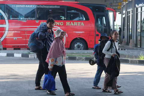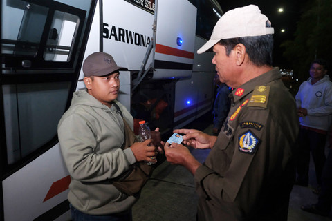 Anggota Satpol PP Kabupaten Badung memeriksa kartu tanda penduduk (KTP) milik penumpang bus AKAP saat inspeksi mendadak (sidak) pada arus balik Lebaran di Terminal Mengwi, Badung, Bali, Senin (7/4/2025). Foto: ANTARA FOTO/Nyoman Hendra WibowoSebanyak 2.042 penumpang di terminal tersebut diperiksa identitasnya untuk mengantisipasi masuknya warga pendatang tanpa identitas ke Bali terutama saat arus balik Lebaran. Foto: ANTARA FOTO/Nyoman Hendra Wibowo"Antisipasi penduduk 'liar' tanpa identitas dan pekerjaan agar tidak ada kriminal," kata Tenaga Fungsional Ahli Madya Satpol PP Badung Ni Nyoman Santiasih di Mengwi, Kabupaten Badung, Bali, Senin. Foto: ANTARA FOTO/Nyoman Hendra WibowoSantiasih mengatakan bahwa pihaknya berencana memeriksa identitas penduduk pendatang itu dua kali dalam sebulan. Dalam pemeriksaan ini, pihaknya bekerja sama dinas sosial, dinas kependudukan dan catatan sipil, serta aparat di level kecamatan dan desa/kelurahan. Foto: ANTARA FOTO/Nyoman Hendra Wibowo