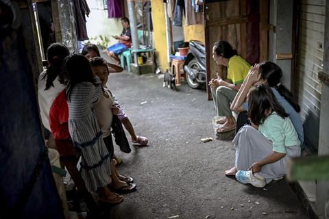 Warga beraktivitas di kawasan pemukiman padat penduduk, kawasan Tanah Abang, Jakarta, Minggu (13/4/2025). Foto: Jamal Ramadhan/kumparan