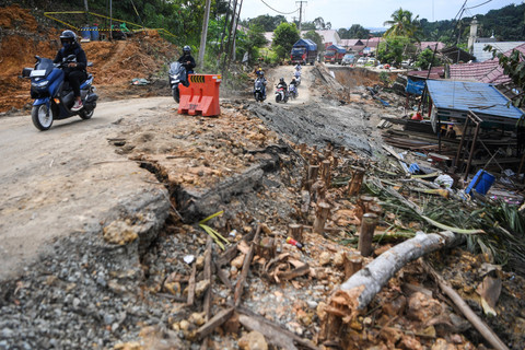 Foto: Jalan Poros Samarinda-Balikpapan Amblas, 21 Rumah dan Masjid Terdampak - my blog